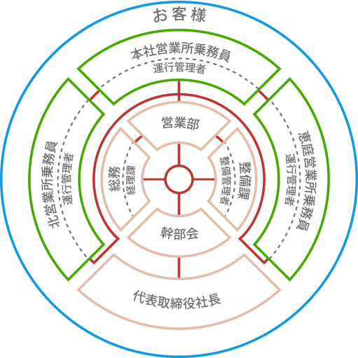 解説:当社の組織イメージはハンドル・タイヤをイメージしたものです。