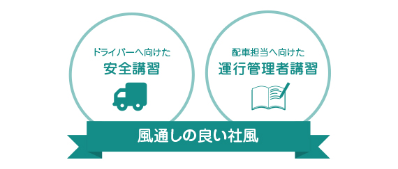 また交通事故の多くが乗務員の心理状態に起因することはよく知られているところ。風通しの良い社風を創ることでスタッフがお互いの顔色や健康状態を気にかけ、注意を喚起しあうことにより、安全運転意識と活力を生み出すという相乗効果を生んでいます。